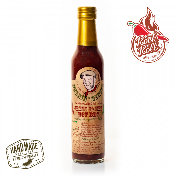 Jessi James ist der Tischverschärfer für jedes feurige BBQ. Man kennt bestimmt die langweiligen BBQ Saucen mancher Major Labels. Dort wird mit „vorsicht scharf“ hantiert und nichts steckt dahinter. Der Geschmack bleibt meistens auch auf der Strecke – doch Burnin’ Benze schafft Abhilfe!
