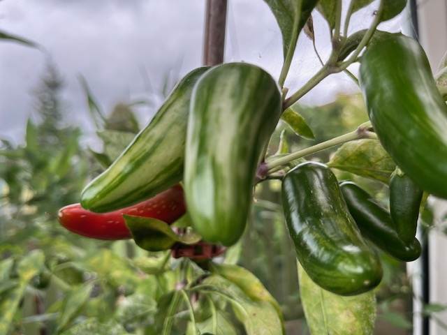 (ebenfalls panaschierte Blätter) mit einer Jalapeno.